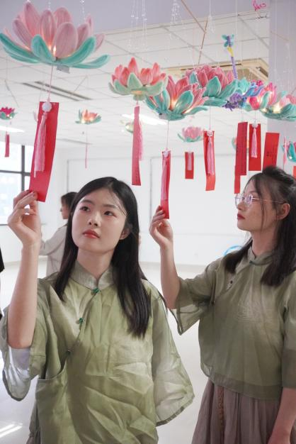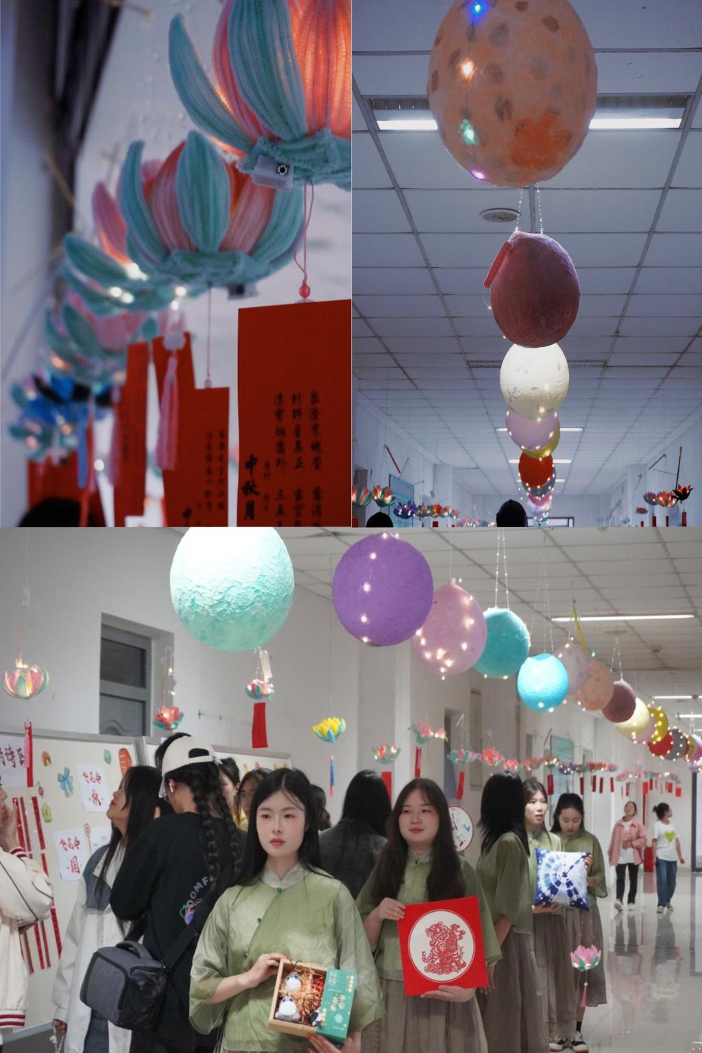 现场设计了许多主题活动,分为赏月区、抚琴区、投壶区、说书区、射箭区、宫饼区、吃茶区、猜谜区、对诗区、赏灯区等多个区域,同学们在不同的区域可以感受到多种多样的习俗和文化。活动开始后,同学们积极有序地参与到各个活动中,感受猜灯谜时的奇思妙想,投壶射箭时的凝神静气,飞花令时的妙语连珠。与此同时,听书区的同学们,也在认真专注的听说书人讲吃茶、宫饼的由来,现场热闹又有序。同学们在感受节日带来的欢乐的同时,浓浓的传统文化学习氛围伴随着灵动的灯光也荡漾在整个校园。