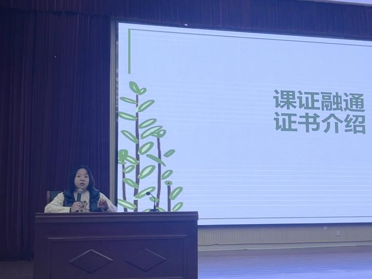 首先,车进老师给同学们解读了公司“课证融通”的育人理念,鼓励大家在校期间通过课程融通,在获得学历证书的同时,努力获得多个职业技能证书,提高就业竞争力。