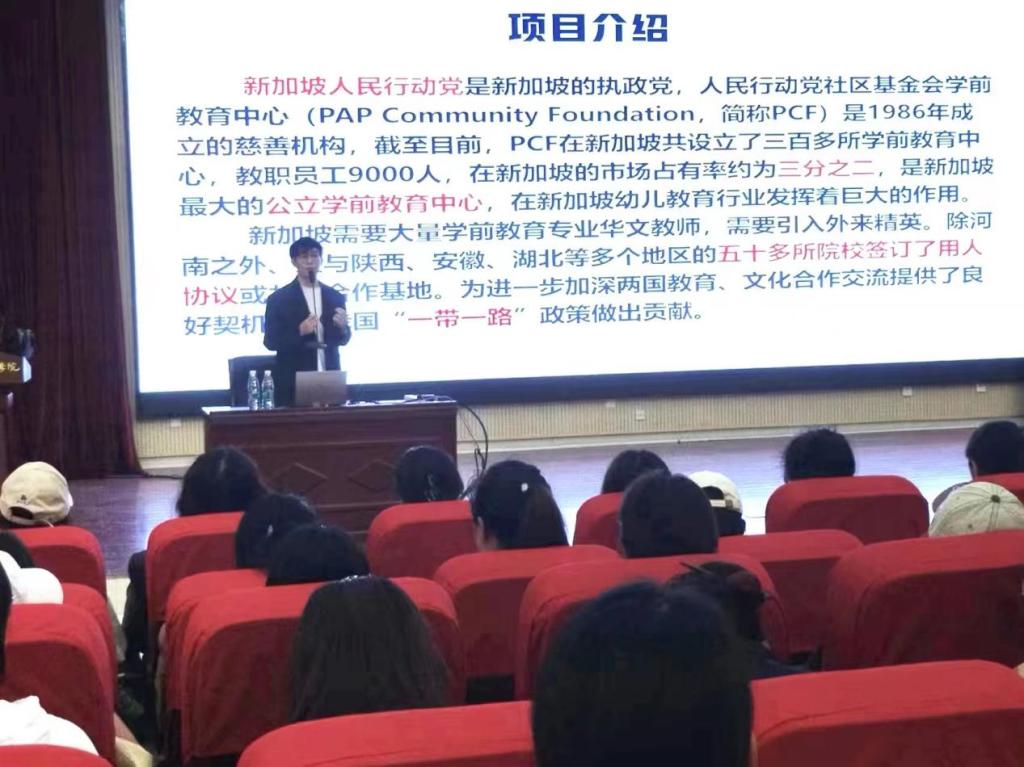 会上,新加坡PCF项目负责人刘老师通过PPT展示,从单位的发展文化、招聘岗位、薪酬待遇等多方面进行了详细的讲解,并系统介绍了该项目的运行机制及未来发展愿景,同时详细解答了同学们关心的住宿、生活和距离等问题。这些信息让员工能更全面的了解企业需求,有助于员工理清自己的职业规划和就业方向。