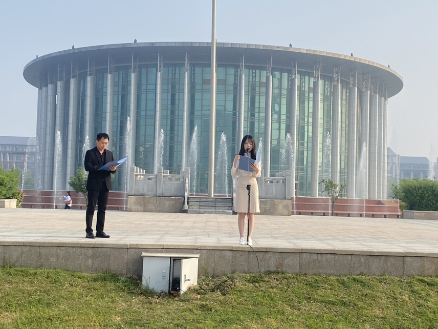 23级员工代表杨艺卓同学以“传承五四志,弘扬青春梦!”为题做国旗下的演讲,杨艺卓同学在演讲中提到,新时代中国青年要担当时代责任,并号召同学们要继承和发扬五四精神,争做堪当民族复兴重任的时代新人!