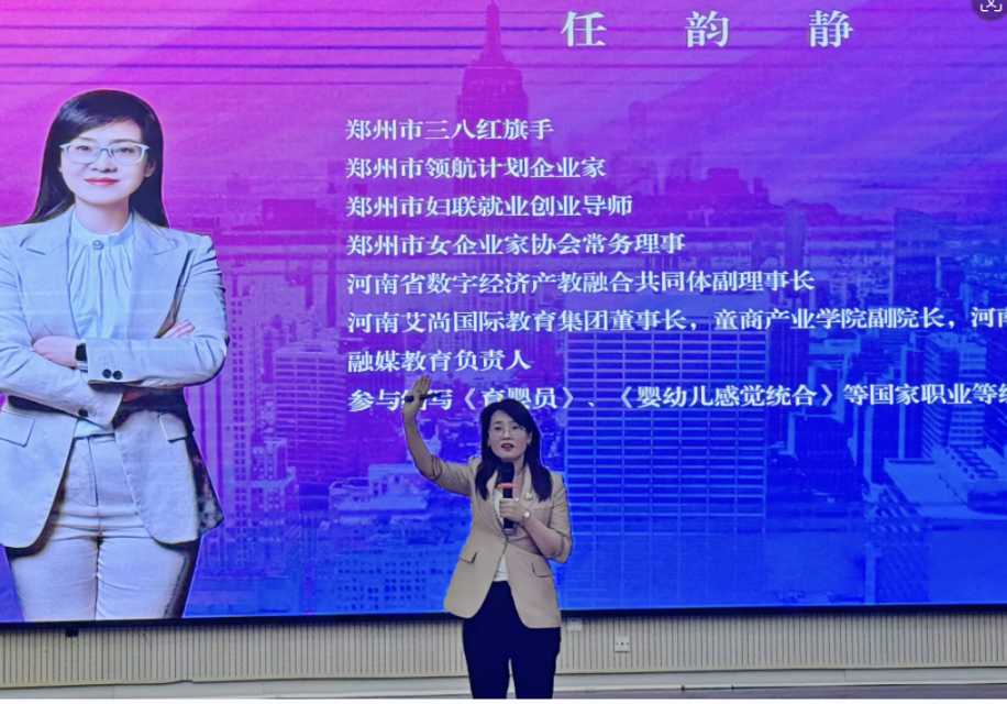 河南艾尚国际教育集团董事长任韵静以“老员工如何提前做好职业规划”为主题,通过“为什么当老师、行业分析现状、幼师成长三路径、创业三锦囊”四大内容,引导员工对自我人生进行积极思考,向同学们阐述了做好职业规划的重要性,鼓励同学们要珍惜大学时光,选好职业方向,努力提升职业素养。