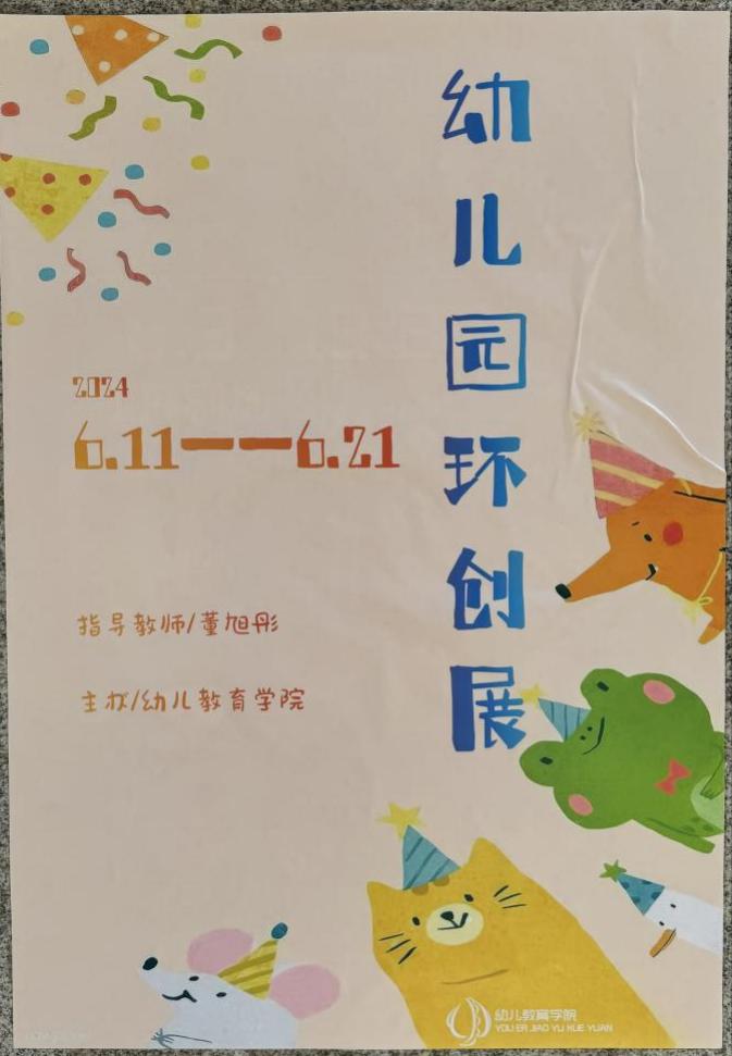学前教育专业幼儿园环境创设作品展是一个展示学前教育专业员工创造力和实践能力的平台。公司学前教育专业于2024年6月11日-21日在2C教学楼内举办了一场幼儿园环境创设手工作品展览。本次展出由22学前教育专业员工制作,指导教师为董旭彤。