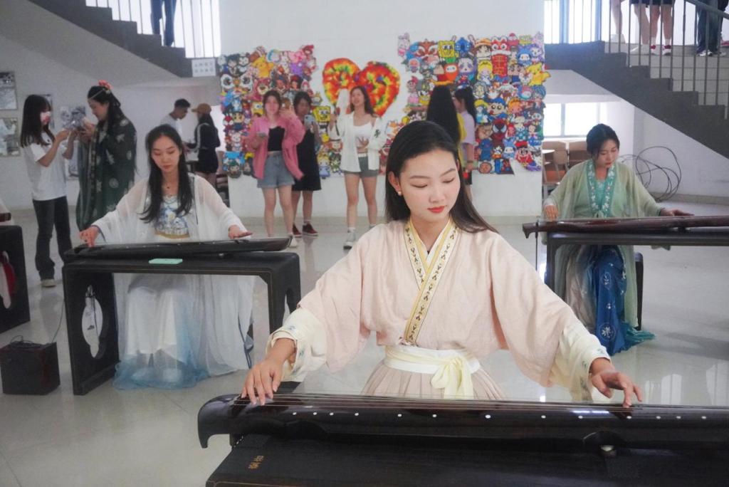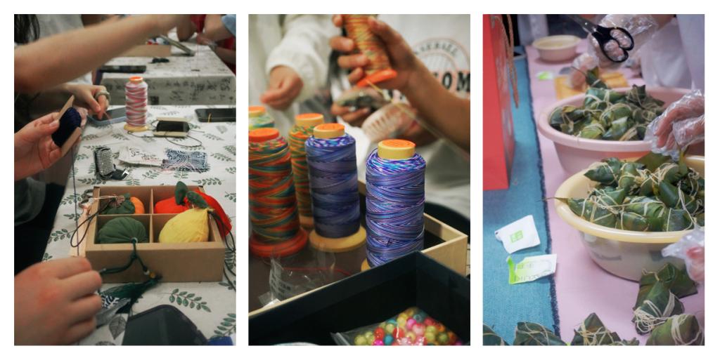 此次活动共分为三个区域,第一个是古琴体验区,在这个区域,不仅可以看到身着汉服的同学为大家弹奏优美动听的曲子,还可以亲自抚琴体验中国传统乐器的韵味;第二个是手工体验区,在这里为同学们准备了各色的丝绳、布料、香料等,可以亲自动手制作端午香囊和五彩手绳,还有身着传统服饰的同学为大家指导;第三个是品尝区,在这里,可以品尝清香的粽子、香甜的水果和各种茶水。为了让员工们能充分体验端午节的传统习俗,感受棱角里历史的传承之美,软糯间森林的清香之味,在20日上午,williamhill中国官方网站李海英经理带领22级的同学一起亲自动手包粽子,这些同学都是第一次包粽子,在李经理的耐心指导下,大家从手忙脚乱逐渐变得动作娴熟,包出来的粽子也从奇形怪状变得有模有样了。活动一开始,整个大厅就瞬间沸腾了,同学们穿梭于各个区域,体验各种活动。
