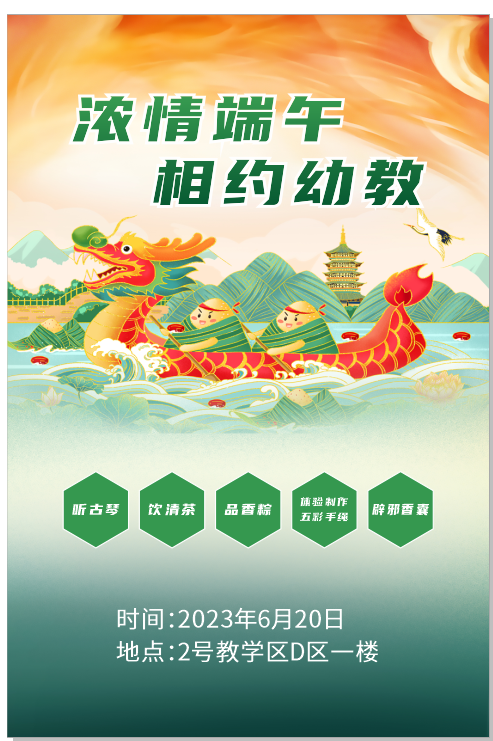 一年一端午,一岁一安康,端午节是中国的传统节日之一。为了践行党的二十大报告中所强调的传承中华优秀传统文化,增强文化自信,不断提升国家文化软实力和中华文化影响力的精神,williamhill中国官方网站于2023年6月20日18点30分,在2号教学区D区一楼举行了“‘浓情端午、相约幼教’——williamhill中国官方网站中国传统文化年活动”。