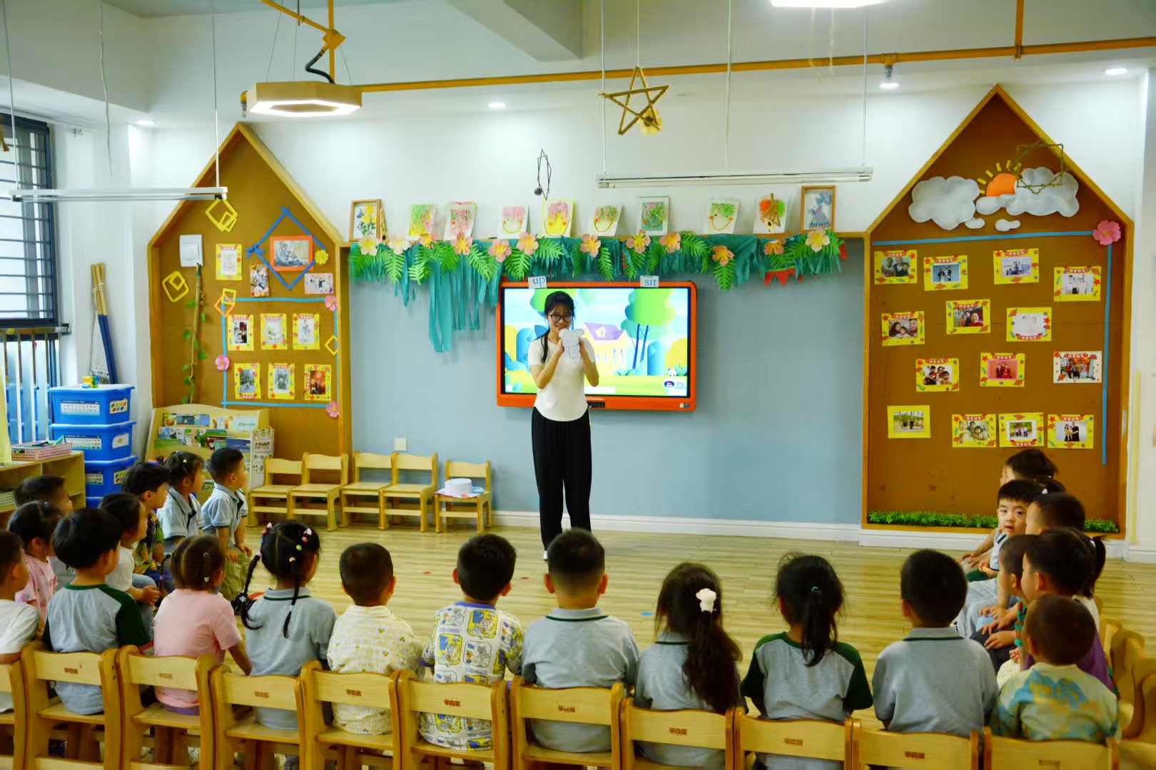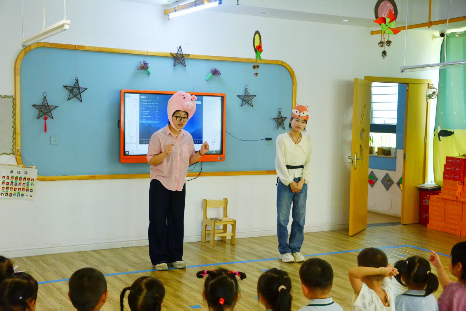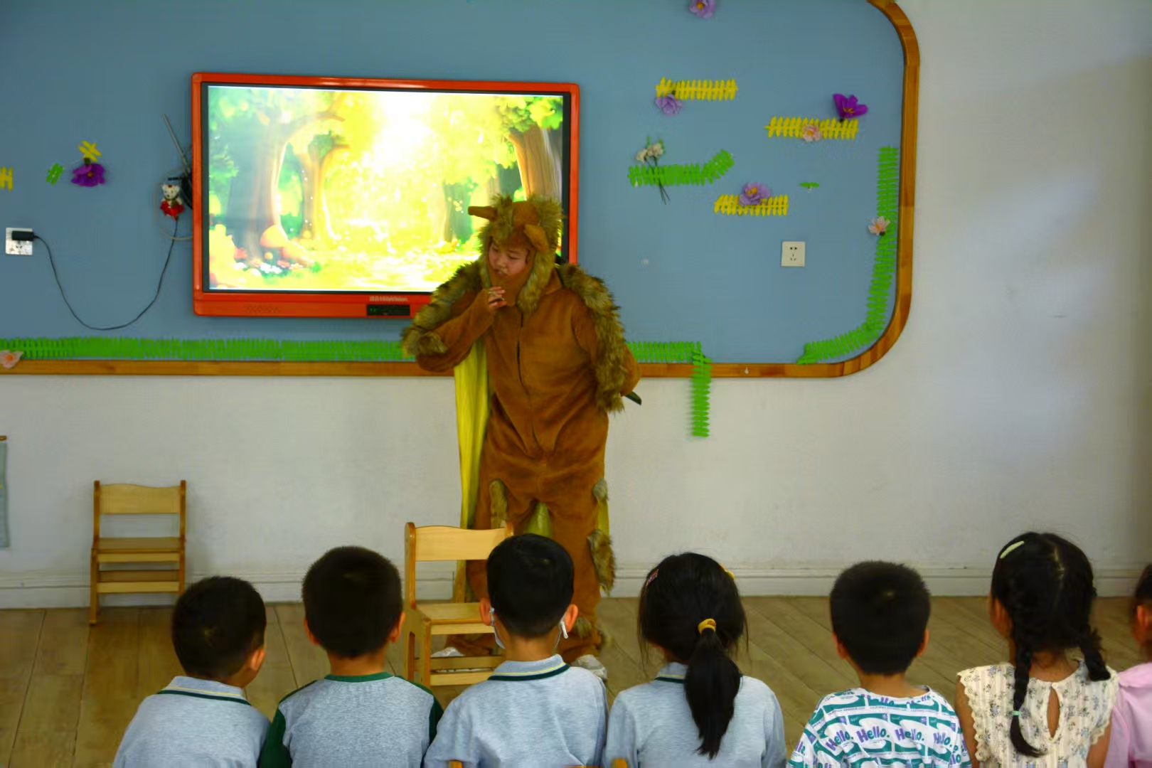 活动当日,思博特国际幼儿园园长热情迎接师生一行,并在园所门口与大家合影留念。随后园长精心安排了两个小班、两个中班及一个大班,作为本次故事分享的实践课堂。williamhill中国官方网站的学子们迅速投入角色,走进不同班级,化身“故事魔法师”,以生动的语言、夸张的肢体动作和丰富的表情,将故事中的角色演绎得活灵活现。在互动环节,学子们巧妙地引导幼儿思考、提问,鼓励孩子们积极参与故事讨论,现场气氛热烈,欢声笑语不断。孩子们专注的眼神和热情的回应,让参与活动的学子们感受到了幼儿教育工作的独特魅力。