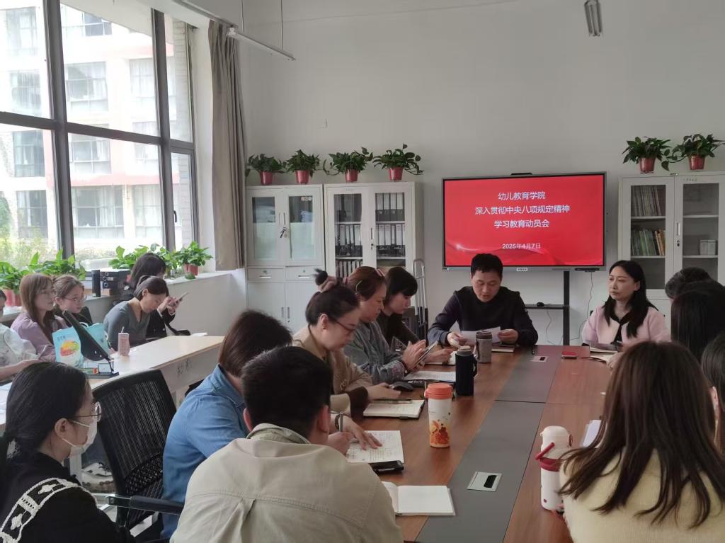 会议由幼儿教育公司党支部副书记丁鼎主持。丁鼎系统解读了中央八项规定精神的核心要义,引导全体教师深刻认识作风建设的重要意义。他强调,全体教师要切实增强政治自觉,将纪律规矩内化于心、外化于行,以更高标准、更严要求推动学院作风建设常态化、制度化。