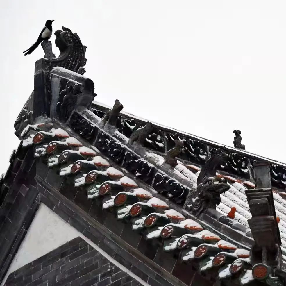 社旗县普降大雪,把赊店古镇装扮的异常肃静古朴。屋顶的喜鹊更是一抹亮色,在雪景中增加了一丝明媚与活力。