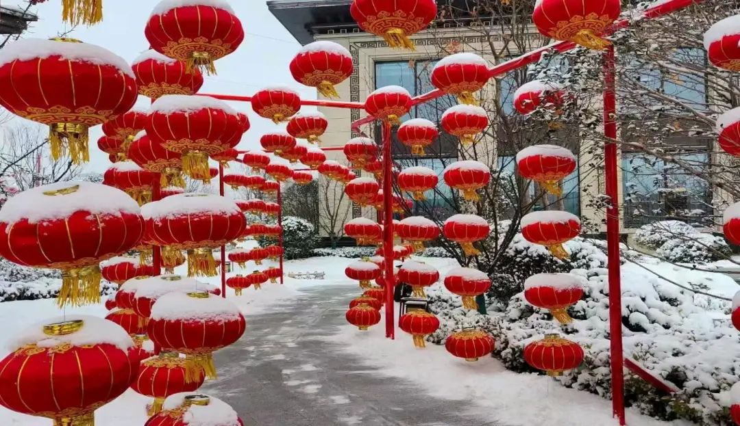 雪停了以后,一出门看到大红灯笼高高挂,喜庆的春节氛围扑面而来。