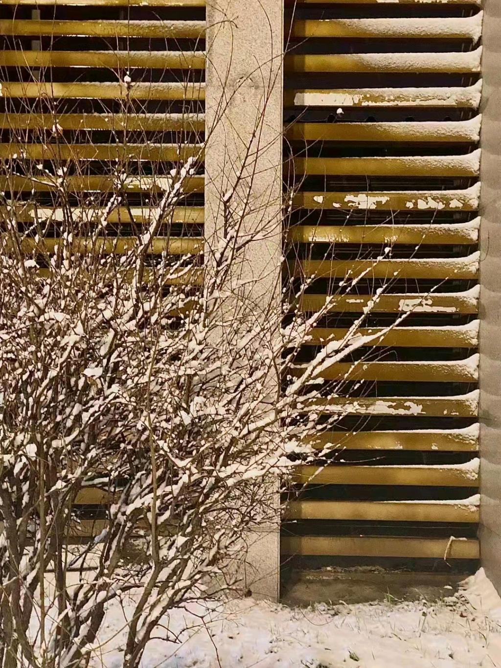 早上睁眼起来,外面雪花飘落,盖满了屋顶马路也压断了树枝,又给木门边缘着上了些许白色,原来大自然才是最会构图的艺术家。