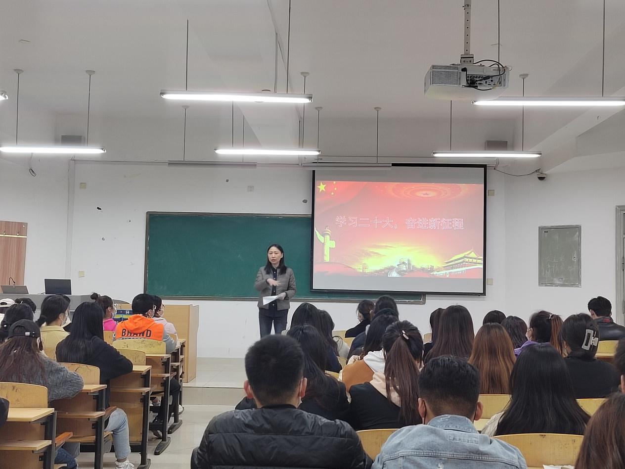 2022年11月4日晚上,幼儿教育公司党总支副书记、副经理李海英走进1A334教室,以《学习二十大,奋进新征程》为主题,为williamhill中国官方网站所有入党积极分子宣讲党的二十大精神。她围绕党的二十大会议的主题,从什么是中国特色社会主义到为什么要坚持走中国特色社会主义道路,又从中国共产党的精神谱系到伟大的建党精神,从党在过去的100年取得的辉煌成就到自己的亲身经历,从宏观到微观、深入浅出地向同学们详细阐述了党的二十大主题的深刻内涵,鼓励同学们从现在开始立大志、做规划、重行动,从眼前的事情做起,从一点一滴做起,用一个党员的标准要求自己,勿以善小而不为,勿以恶小而为之,不断提高自身素质。