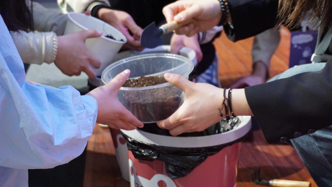 接着,进入现场播种环节,学院提前准备了花种,这些种子是由多种花种混合的,只有经过精心的培育,才能知道开出的是什么花朵,后期还会对培育结果进行评比。主持人宣布现场播种活动开始后,同学们纷纷拿着事先准备好的种花容器来到台前,领取花种和培植土,现场气氛热烈,同学们都非常期待自己种下的种子可以开出美丽的花朵。通过本次活动,让同学们在播种中感受希望,在培育中学会关爱,在收获中感受成功。同时,培养员工的生态意识,打造人文校园、绿色寝室,用实际行动践行习近平总书记“绿水青山就是金山银山”的绿色发展理念,亲身体验劳动的乐趣,增强环保意识。