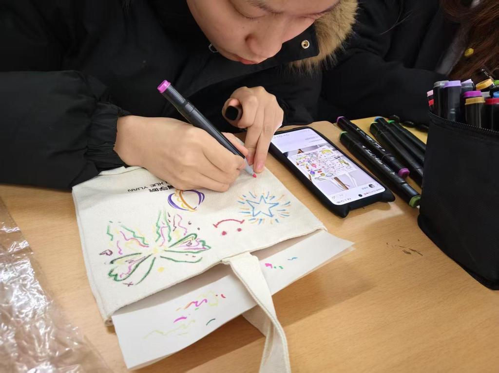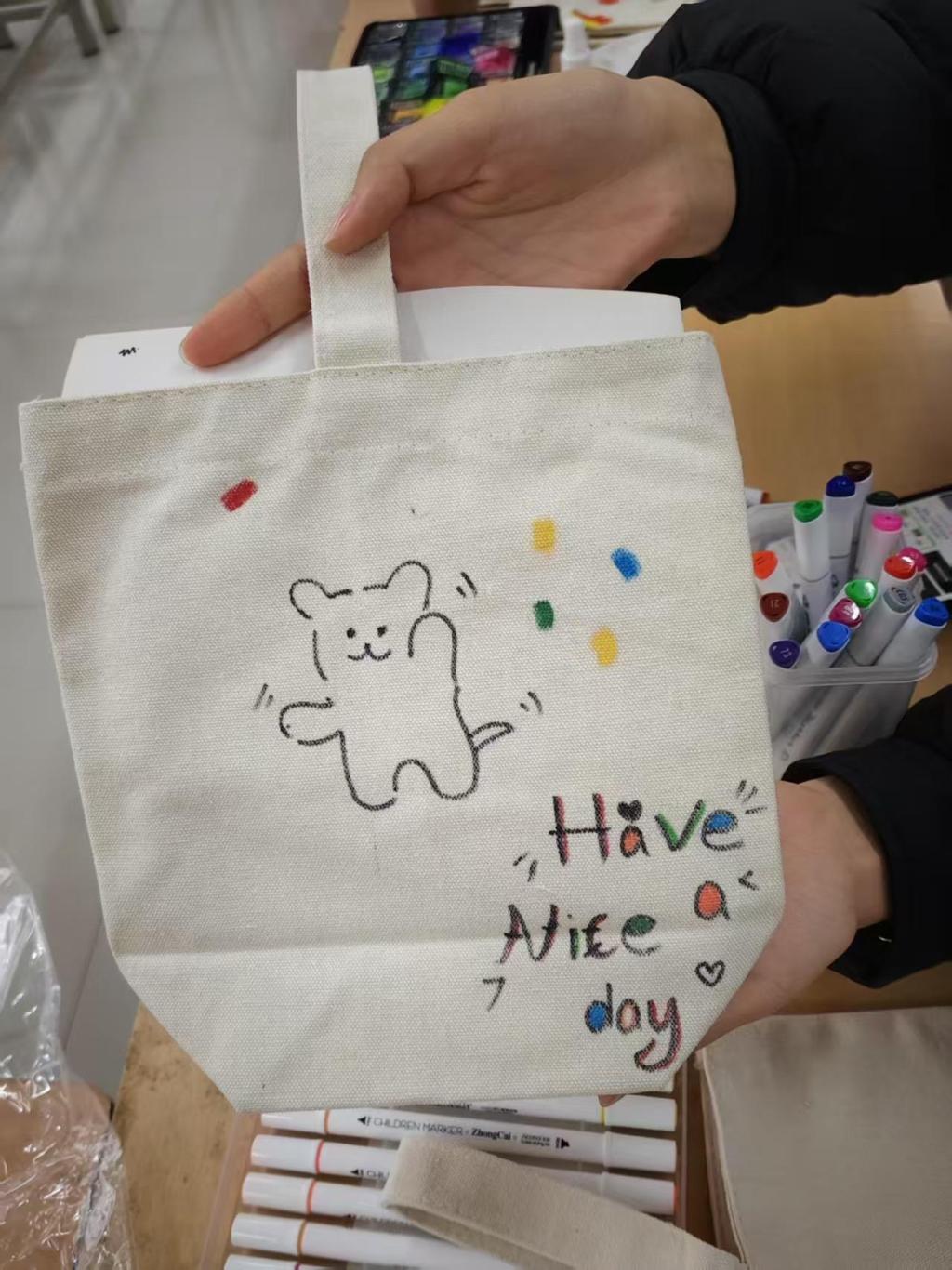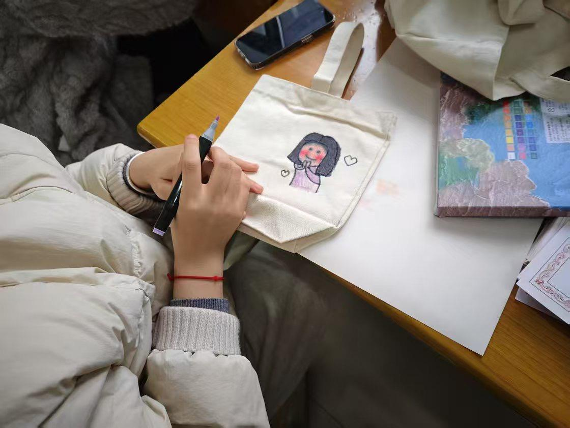 为让同学们在节日感受手工乐趣,展现创意,学院筹备了DIY帆布包活动。活动现场,同学们迫不及待动手创作,互相交流、分享灵感。几小时后,普通帆布包变得独一无二、满是艺术感。大家拎着成品拍照,脸上尽是满足与自豪。