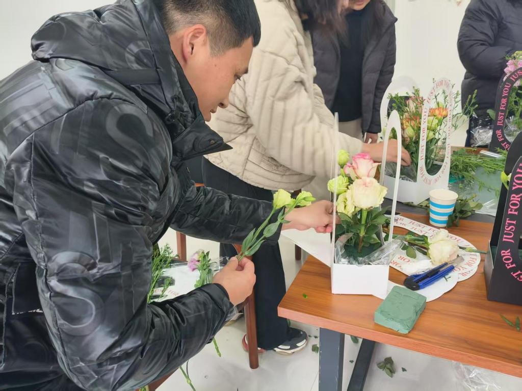活动伊始,学院领导向全体教师送上节日祝福,对教师们的辛勤付出予以肯定。现场精心布置,备齐鲜花与工具。活动中,女教师们挑花枝、搭色彩、修枝叶,创作出独具匠心的插花作品,饱含着对美与生活的热爱。