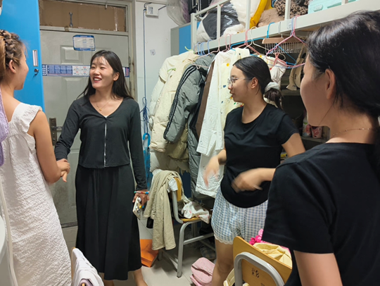 暑假结束,新学期伊始,为深入了解24级员工返校后宿舍情况,切实加强员工宿舍安全卫生管理,营造安全、整洁、温馨的住宿环境,2025年9月7日下午,幼儿教育公司党支部副书记丁鼎与24级辅导员深入员工宿舍,开展全面细致的查寝工作。