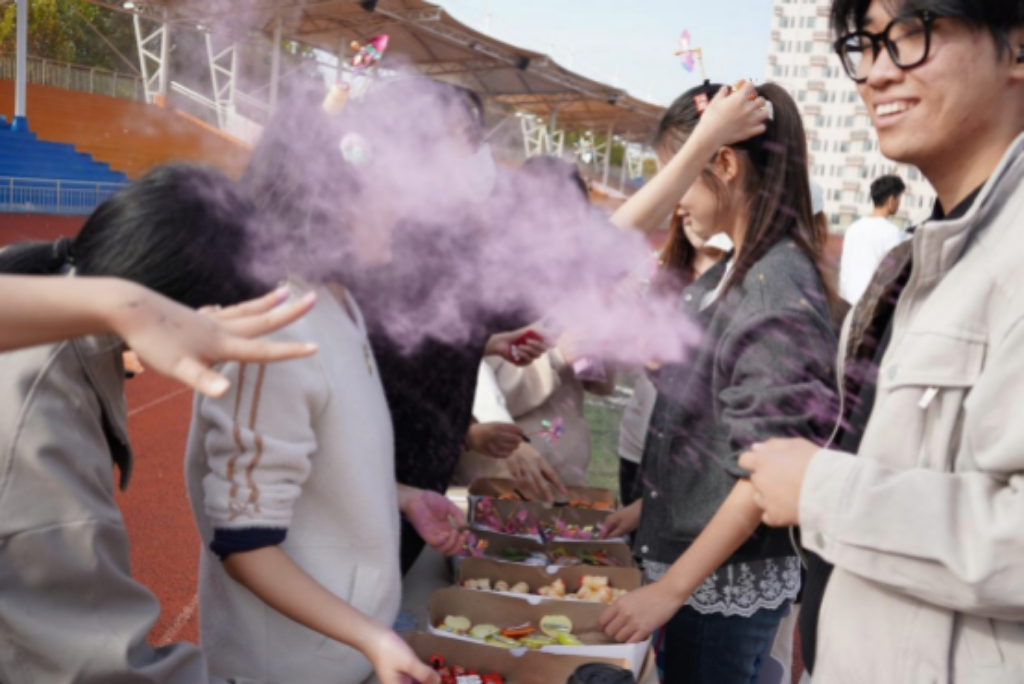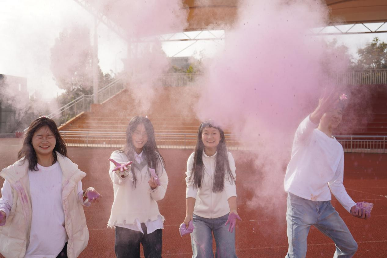 彩色玉米粉在空中划出一道道弧线,200余名员工或跑或走,穿梭在各个色彩站,接受志愿者的彩粉祝福。2-3圈的奔跑让色彩层层叠加,终点处,大家一同抛起彩粉,彩色烟雾弥漫,欢声笑语中压力烟消云散。