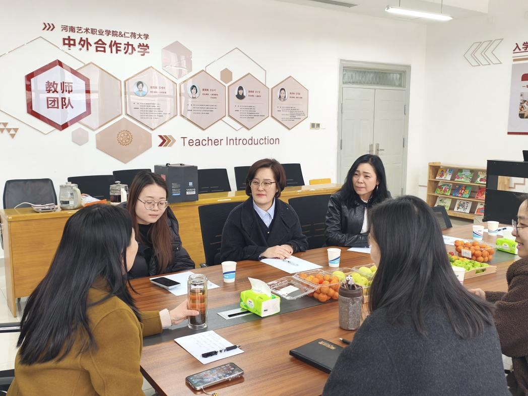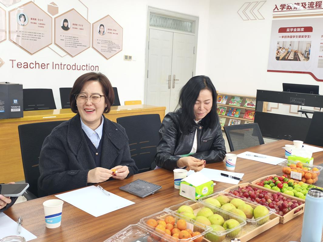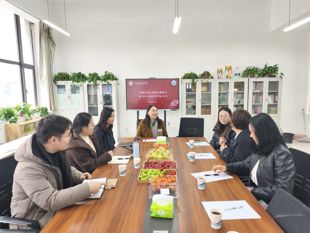 会议伊始,李海英代表学院对韩方两位教授的到来表示热烈欢迎,并对她们在合作项目中付出的努力和贡献给予高度评价。随后,双方围绕韩方教授的教学情况展开深入交流。金彗羅教授和金京玧教授分享了授课过程中的体会,充分肯定了中国员工的积极性与专业素养,同时也表达了在教学资源支持和跨文化沟通方面的实际需求,为后续教学优化提供了重要参考。最后,李海英向韩方详细通报了中韩合作办学项目的阶段性评估结果。