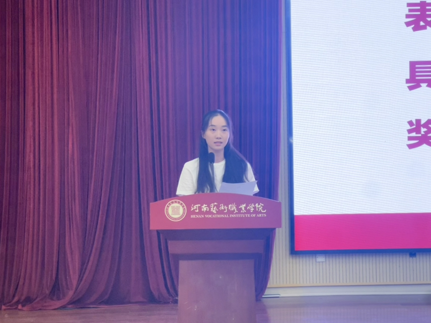 22学前中外1班的史鹏暄作为优秀员工代表发言,史鹏暄表示,五四精神引领着我们每一位老员工成长和进步,作为一名青年员工,不但要学会学习,还要学会承担和尝试,无论遇到任何的挫折和困难,都不要轻言放弃。