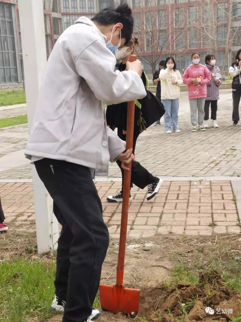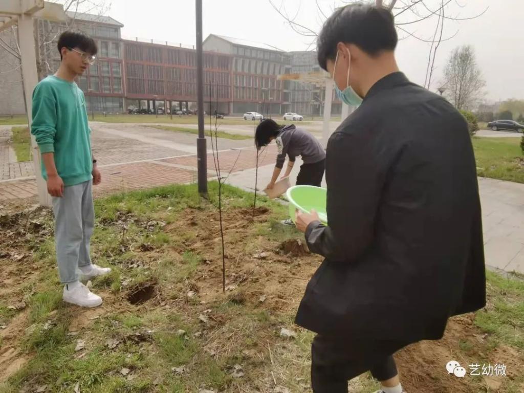 同学们分工明确,挖坑,种树,填坑,浇水,在老师们的指导下和同学们互帮互助下,一颗颗小树苗拔地而起。看着自己亲手种植的小树,同学们不由得感到自豪和成就感。纷纷和自己种的小树合影留念。