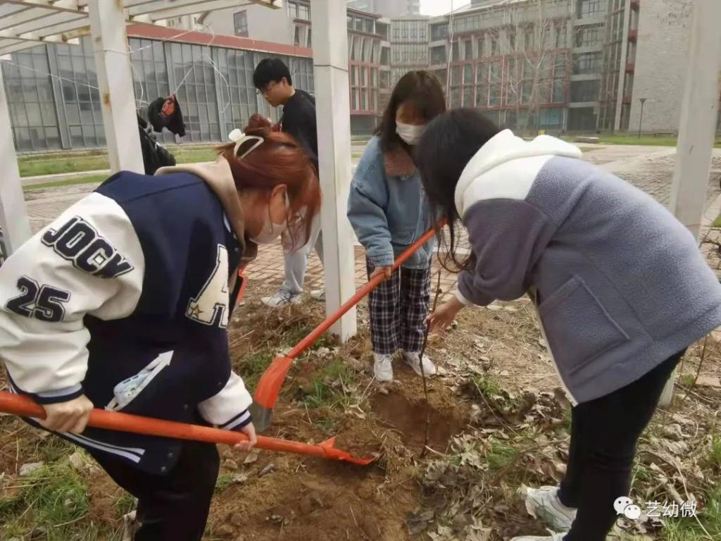 3月14日下午,williamhill中国官方网站副经理李海英,党支部副书记穆延柯,党政办主任崔颖,教学办主任车进以及21级辅导员冯凡与20、21级的员工们一起种下一颗颗小小树苗,为校园增添一丝光彩。