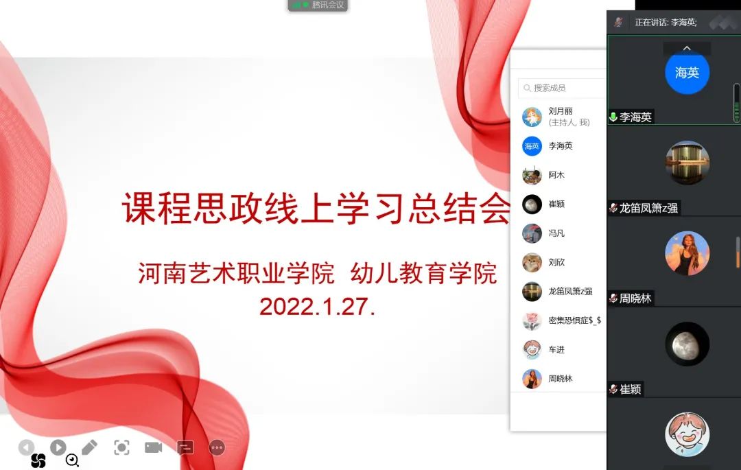 为了进一步深化全体教师对课程思政的认识,分享总结学习经验,于2022年1月27日上午9:30,召开了课程思政线上学习总结会。