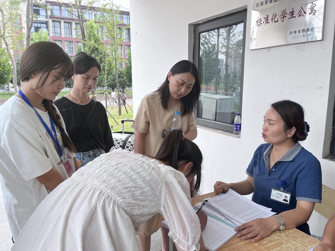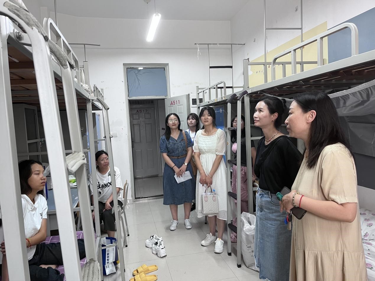 迎新工作结束后,为深入了解2023级新生的生活状况、思想动态以及住宿情况,帮助新生更快转变角色,尽快适应新生活新环境,幼儿教育公司党支部副书记、副经理李海英,党支部副书记丁鼎,党政办公室主任崔颖同23届辅导员赵秀红、齐宁阳、李紫函傍晚深入到新生宿舍,为新生送去暖心的关怀与问候。