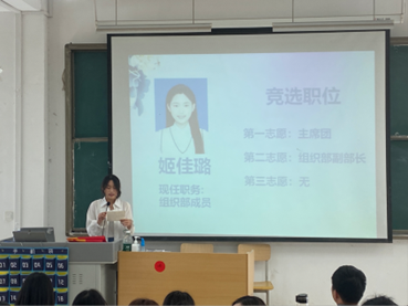 在述职竞争过程中,23级参选同学们以饱满的热情和自信的态度,充分展现了自己的优点和特长,详细阐述了工作经历,也表达了对团总支员工会工作的热爱,希望未来能从工作岗位中进一步锻炼能力,全心全意为每一位同学服务,为学院的发展贡献青春力量。