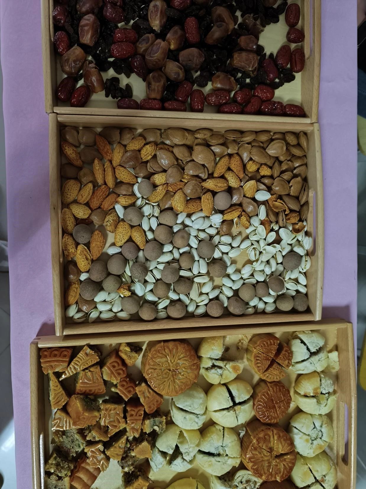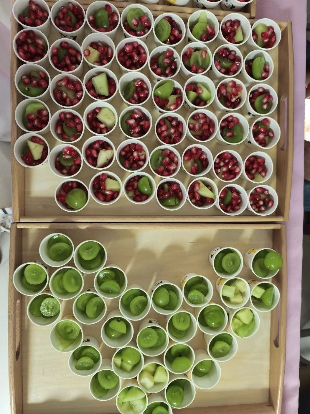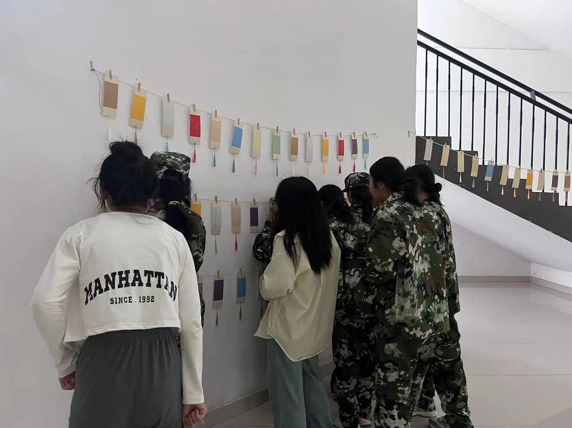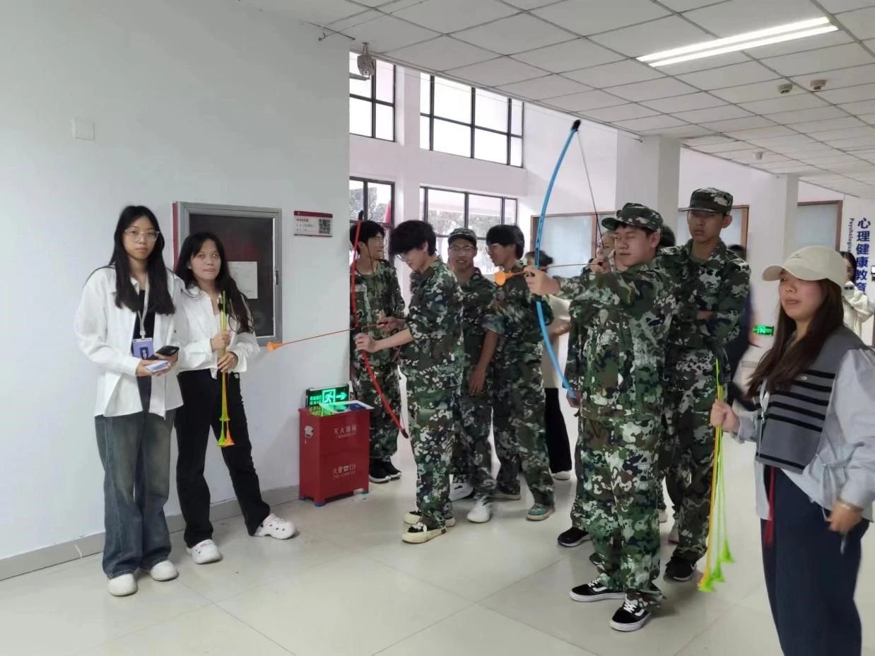 活动开始之前,2023级的同学们表演了传统的汉服舞蹈和诗歌朗诵,幼儿教育公司党支部副书记丁鼎和2023级员工申书任共同演唱了《我们一起看月亮爬上来》,现场欢呼声不断。本次活动分为投壶区、射箭区、冰皮月饼区、猜灯谜区、漆扇制作区、领取奖品区。